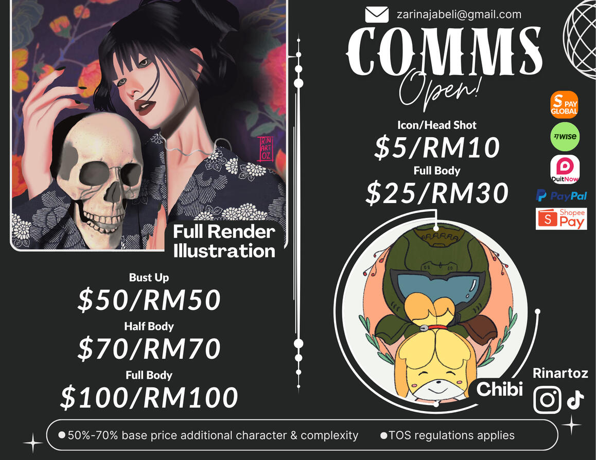 🌍 Commissions are open for everyone — local or international!I’d love to bring your ideas to life through my art ✨📩 Reach me here: